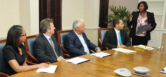 Pictured, left to right, KPMG Restructuring Manager Zelma Wilson; Partner and Managing Director of KPMG’s finance arm in the Caribbean Simon Townend, KPMG Senior Partner Tracy E. Knowles; Callenders Associate Simon Darville, and Callenders partner and insolvency expert Simone Morgan-Gomez, standing. (Photo by Derek Smith, Jr.)