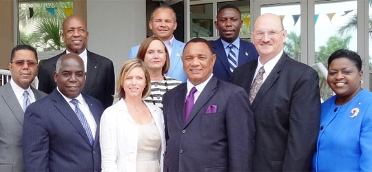 Caption: U.S. Chargé d’Affaires John Dinkelman, Prime Minister of The Bahamas, Prime Minister Perry Christie, Deputy Prime Minister Philip Davis, Minister of Social Services, Melanie Griffin, Minister of Health, Dr. Perry Gomez, Mr. Renward Wells, Parliamentary Secretary, Ministry of Works and Urban Development, College of The Bahamas (COB) President Dr. Betsy Vogel-Boze, Mr. Alfred Sears, Chairman, COB, Dr. Valerie Karr, Autism Speaker and Mario Carey, President of REACH.