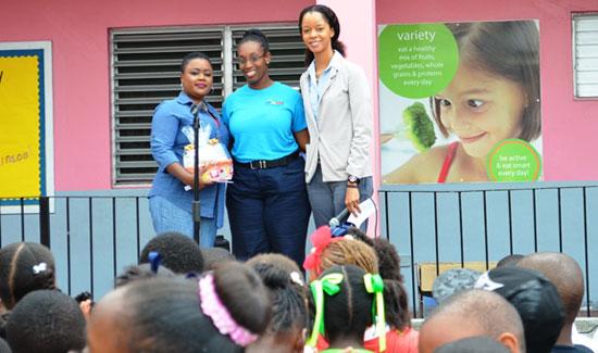 Nassau, Bahamas – Smart Kids Bahamas awards Teacher Nominations winner Ms. Elizabeth Mingo of St. Cecelia’s School a $150 gift certificate and other prizes at the school’s morning assembly.